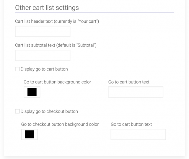This section is where you can customize the display of the cart list further (the list that appears when you hover the cursor over the cart icon).